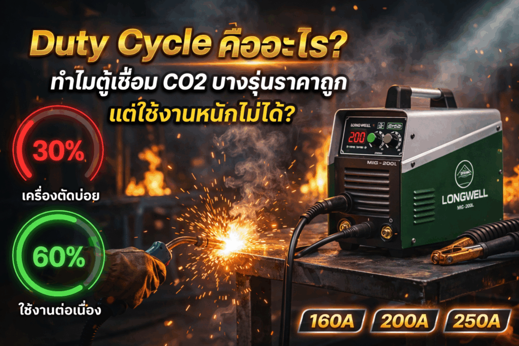ความรู้ช่าง, บทความ, เครื่องเชื่อม / ตู้เชื่อมDuty Cycle คืออะไร? ทำไมตู้เชื่อม / เครื่องเชื่อม CO2 บางรุ่นราคาถูกแต่ใช้งานหนักไม่ได้ บริษัท วรพล อินดัสตรี้ ซัพพลาย จำกัด / 23/02/2026 เวลาคุณกำลังจะซื้อ ต