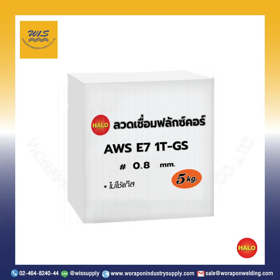 ลวดเชื่อมสแตนเลสฟลักซ์คอร์ไวร์ (MIG) HALO AWS E71T-GS ขนาด 0.8 มม. ม้วนละ 5 กก.