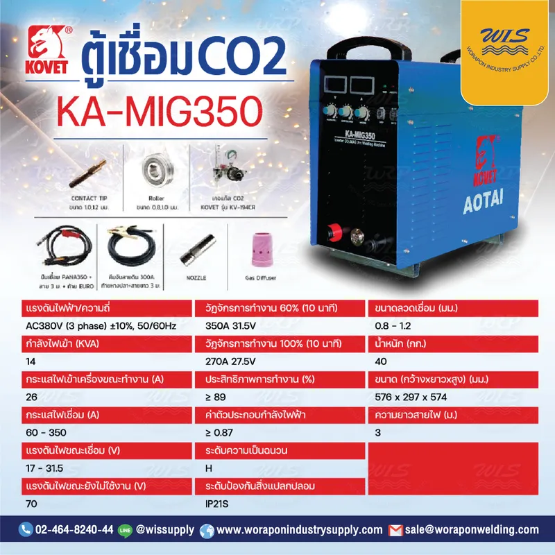 เครื่องเชื่อม KOVET KA-MIG350 MAG (GMAW) AOTAI