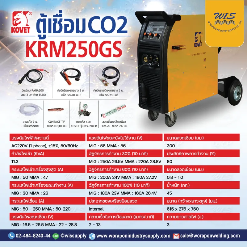 เครื่องเชื่อม MIG KOVET KRM-250GS (STICK) 250A.