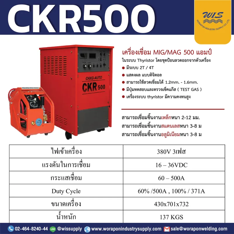 เครื่องเชื่อม MIG/MAG ขนาด 500 แอมป์ ในระบบ Thyristor โดยชุดป้อนลวดออกจากตัวเครื่อง