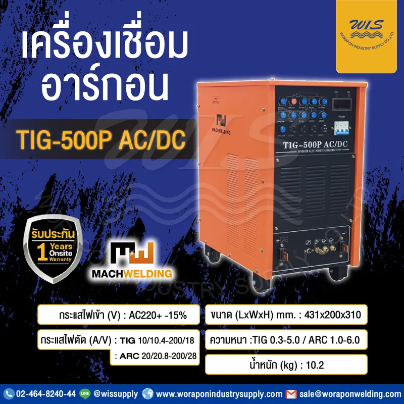 เครื่องเชื่อมอาร์กอน MACH WELDING รุ่น TIG500P AC/DC