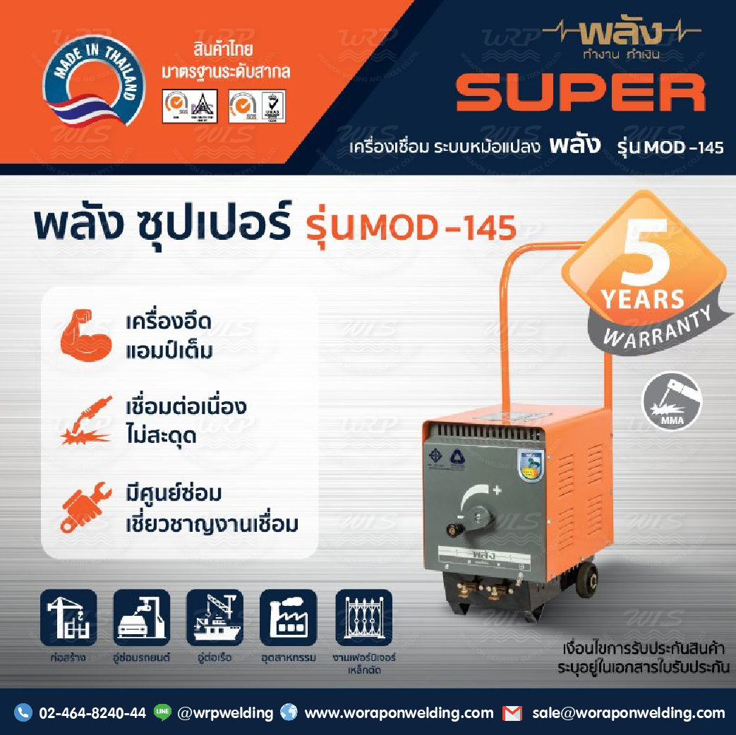 เครื่องเชื่อมไฟฟ้า พลัง MOD-145 (220V) เชื่อมงานหนัก (เฉพาะเครื่องไม่มีสายเชื่อม)