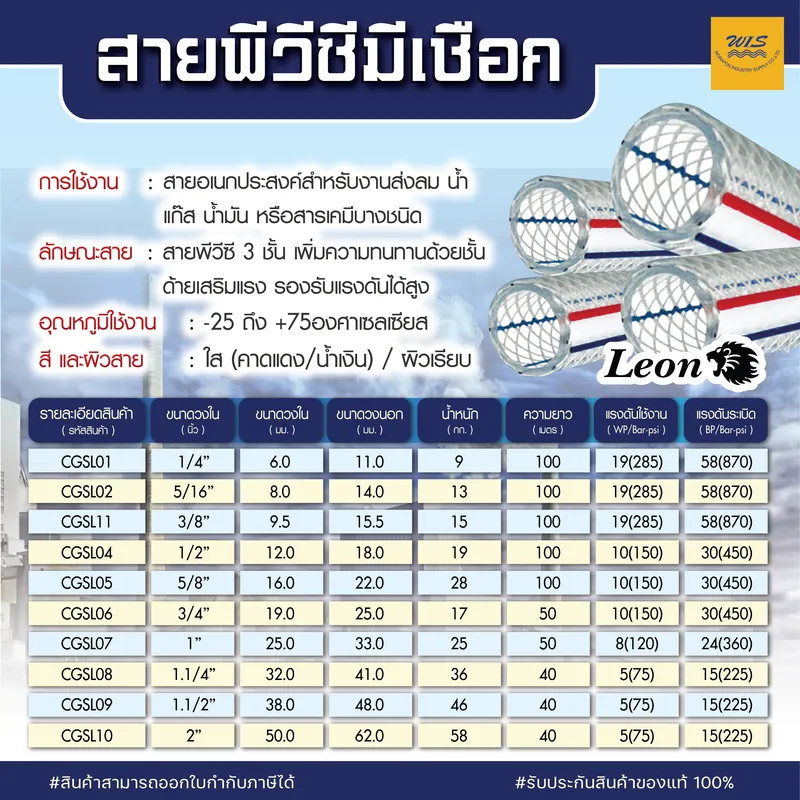 สายพีวีซี มีเชือก LEON: ทางเลือกที่คุ้มค่าสำหรับงานส่งผ่านแรงดันสูง