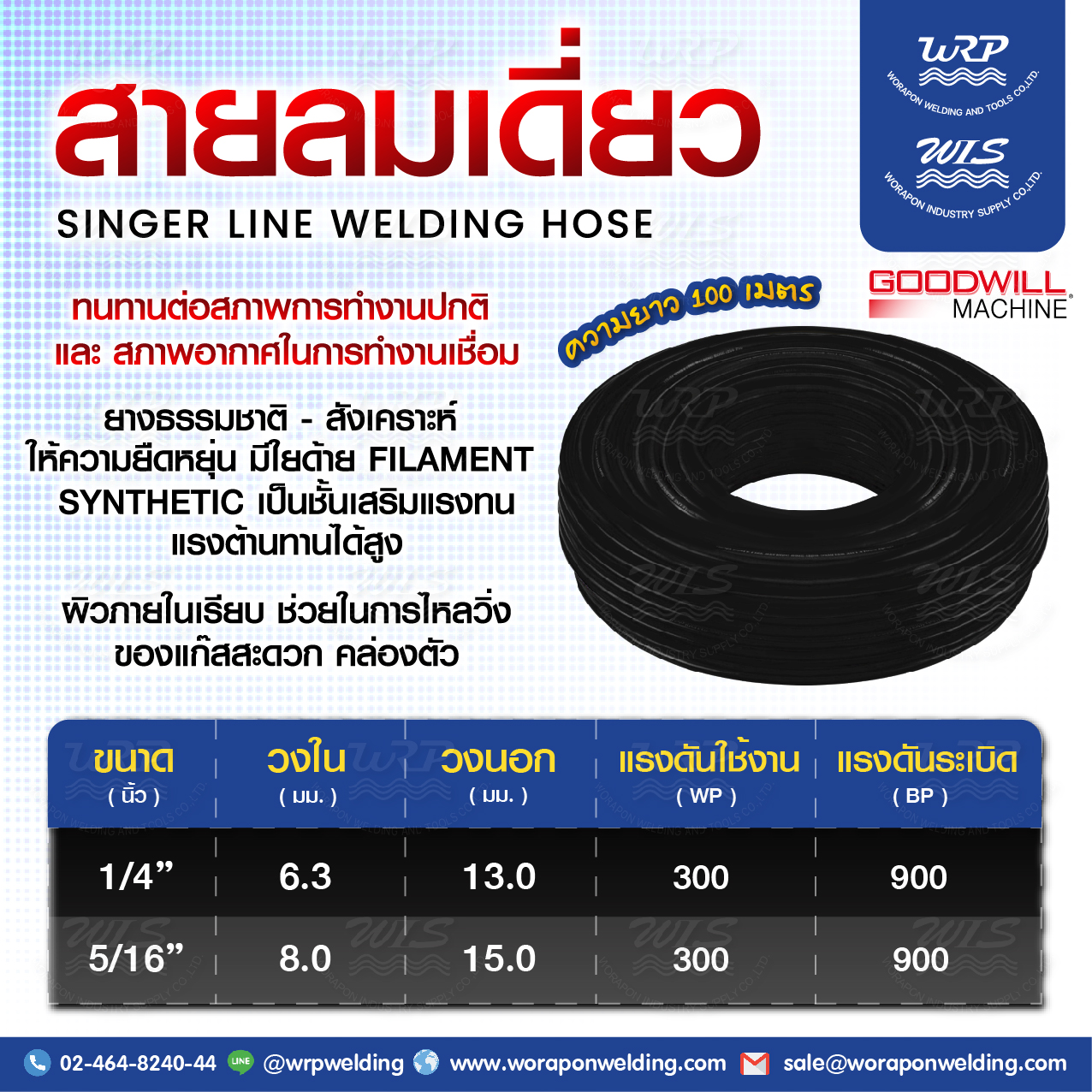 ลักษณะสาย | 3 ชั้น มีชั้นเสริมแรง : ใยด้ายถักที่ชั้นกลางเพื่อรองรับแรงดัน |