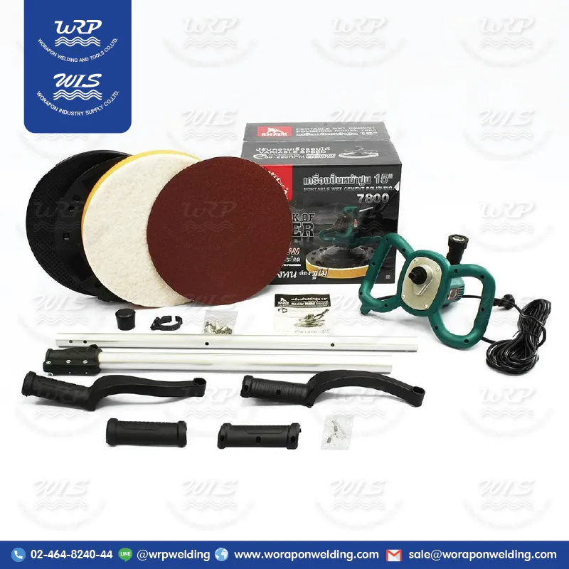 เครื่องปั่นหน้าปูน 15 นิ้ว ความเร็วรอบ 6 ระดับ 80-220RPM กำลังวัตต์เต็ม 860W แรงบิทสูงสุด 20 N.m มีด้ามเสริมแบบยาว 1.5 m ใช้งานได้ 180 องศา