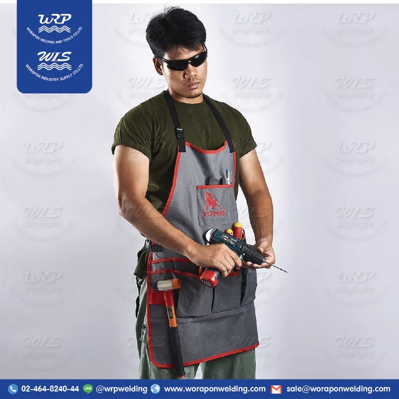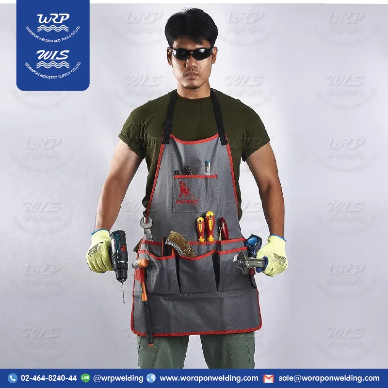 - ชุดผ้ากันเปื้อน ใช้เก็บอุปกรณ์เครื่องมือที่จำเป็นติดตัวไปด้วยขณะทำงาน โดยออกแบบให้สายคล้องคอและสายรัดสามารถปรับระดับให้พอดีกับแต่ละบุคคลได้ เหมาะสำหรับพกพาไปทำงานในสวน, งานอู่รถยนต์ และงานช่าง