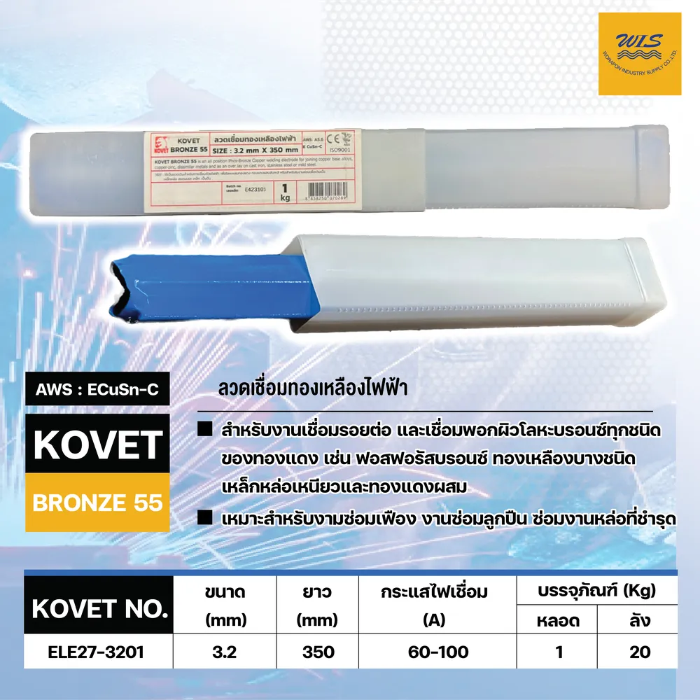 ลวดเชื่อมทองเหลืองไฟฟ้า KOVET BRONZE-55 3.2มม. หลอดละ 5 กก.