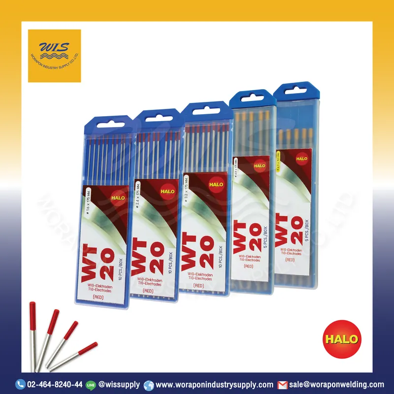 ลวดเชื่อมทังสเตน (TIG) HALO WT-20 สีแดง1.6 X175 มม. 1 แพ็ค 10 เส้น